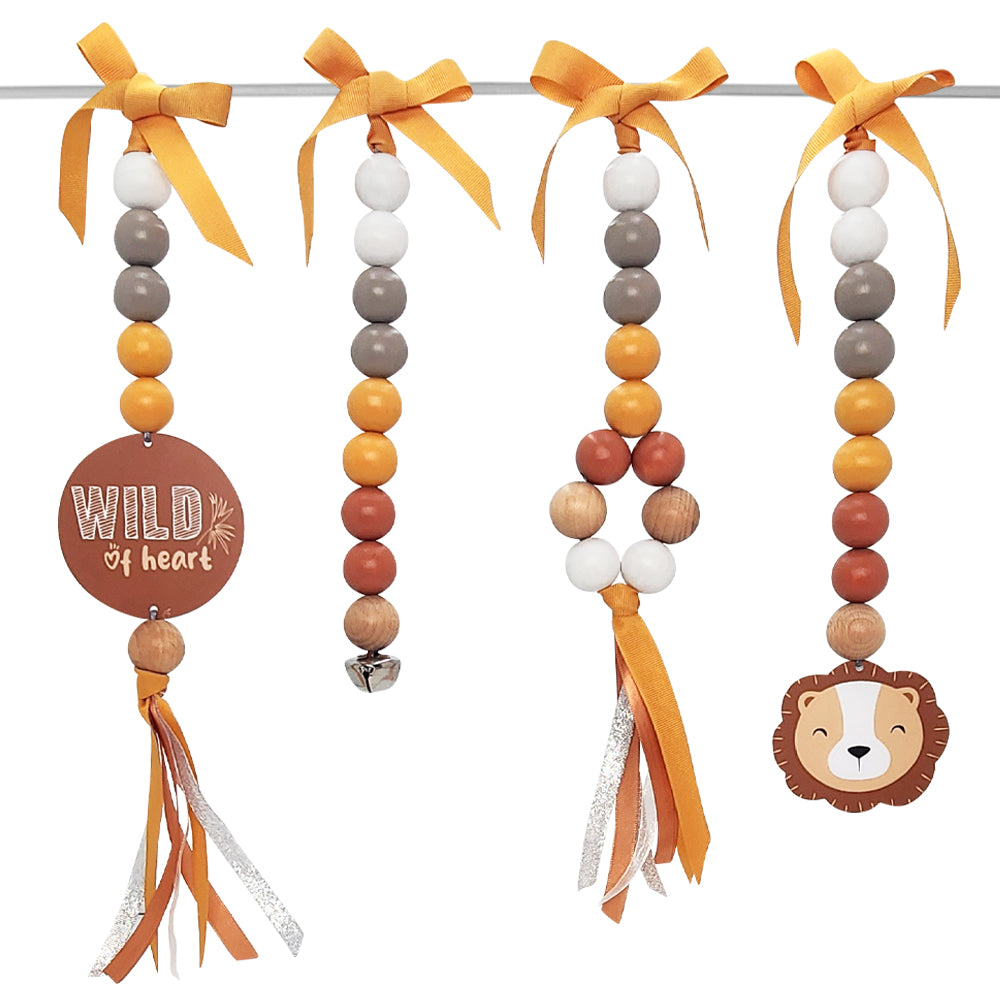 Our Dingle Dangle toy range is a necessity for any nursery, which is just as useful as it is beautiful. Each set is carefully made by hand using natural wooden beads that are hand painted with lead-free paint for added safety. Focusing on auditory development, visual stimulation, tactile development, and gross-motor skills, these deluxe dingle dangles create the perfect space to stimulate and entertain the newest member of your family.